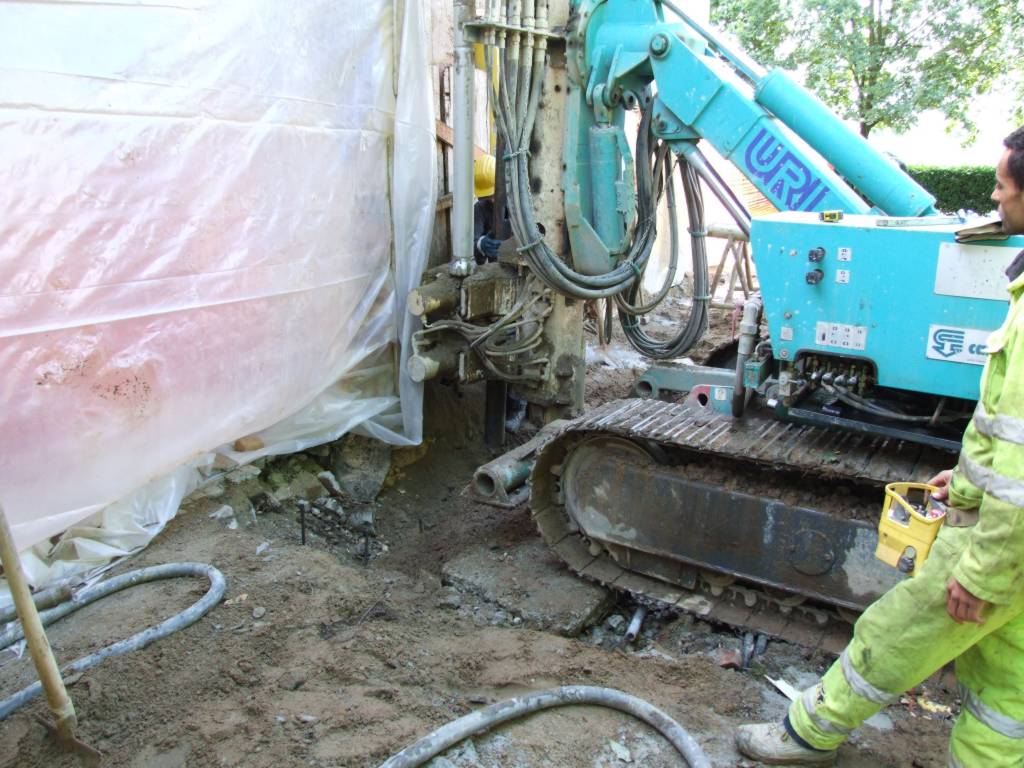 In questo caso, bisognava costruire un nuovo fabbricato con un piano interrato a ridosso di un edificio esistente privo di piano interrato. Così sono stati realizzati dei micropali collegati in sommità da una trave in calcestruzzo armato . Particolari esecuzione micropali